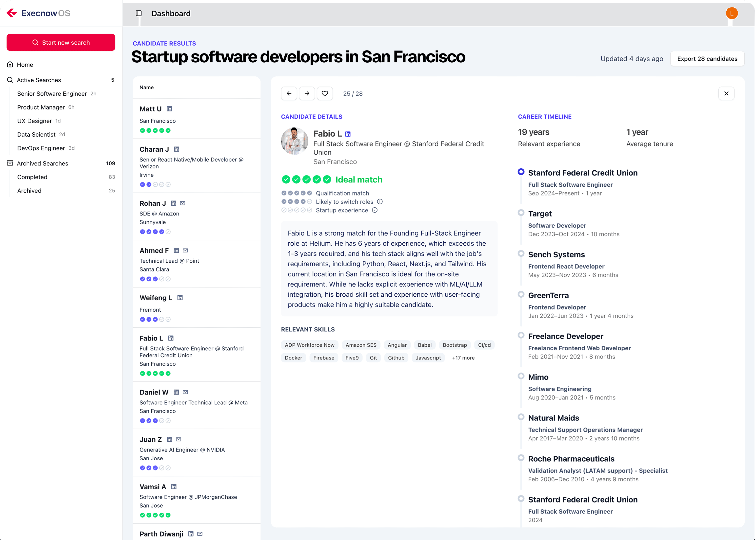 Whether you're a founder hiring solo, a recruiter managing multiple searches, or a talent lead scaling a team—ExecnowOS helps you source faster without adding headcount.